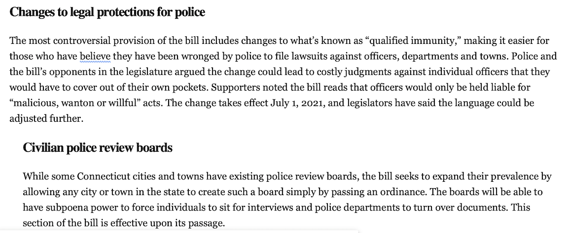 July 30, 2020 - Connecticut Passes a New Law on Police Accountability