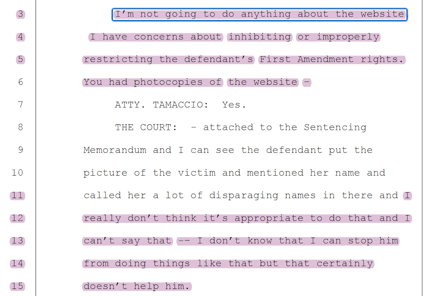 attempts to have the Judge forbid me to publish this website